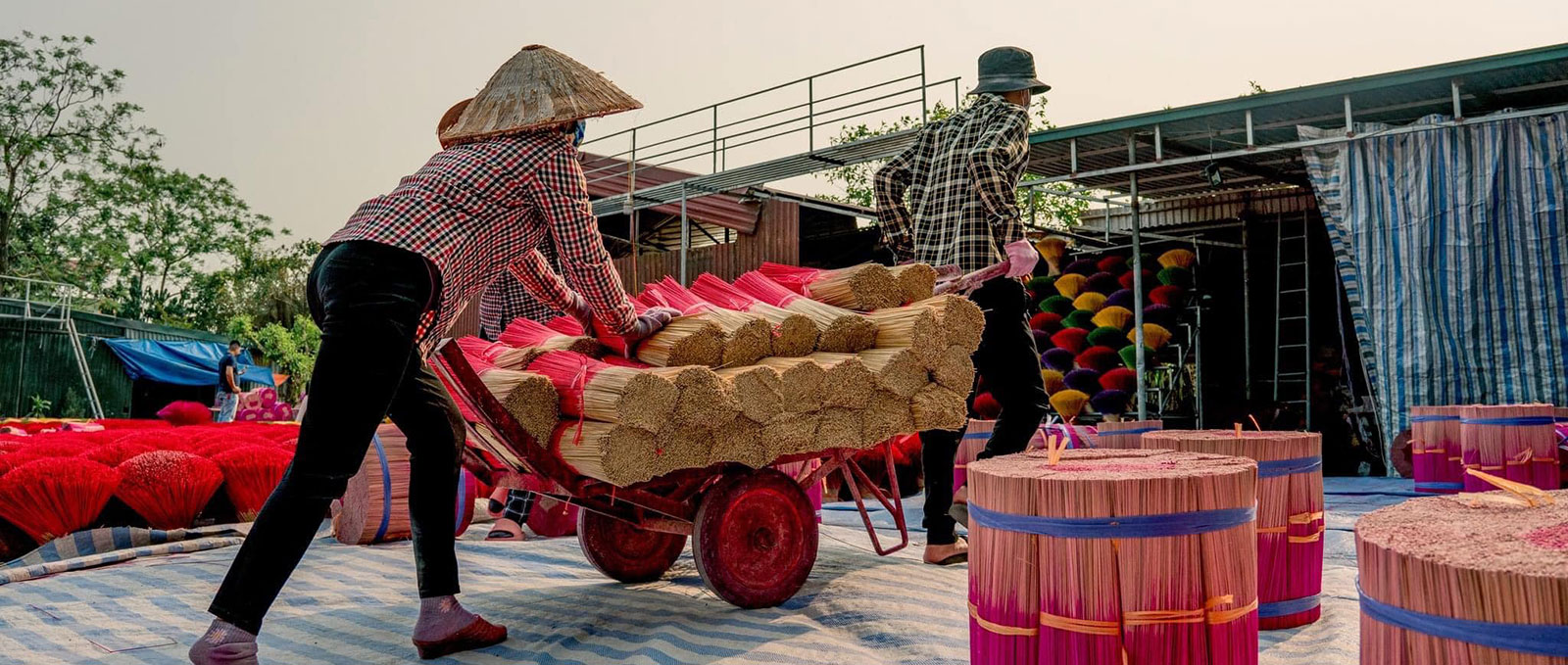 Embark on a captivating half-day tour to explore Vietnam’'s craft villages along the bank of Red River. A scenic one-hour drive takes you to a well known incense village, where local craftsmen reveal the art of making incense sticks. Capture the enchanting process with your camera before heading to a lacquer village. Engage with a passionate lacquer artisan and witness the meticulous craftsmanship in local households.